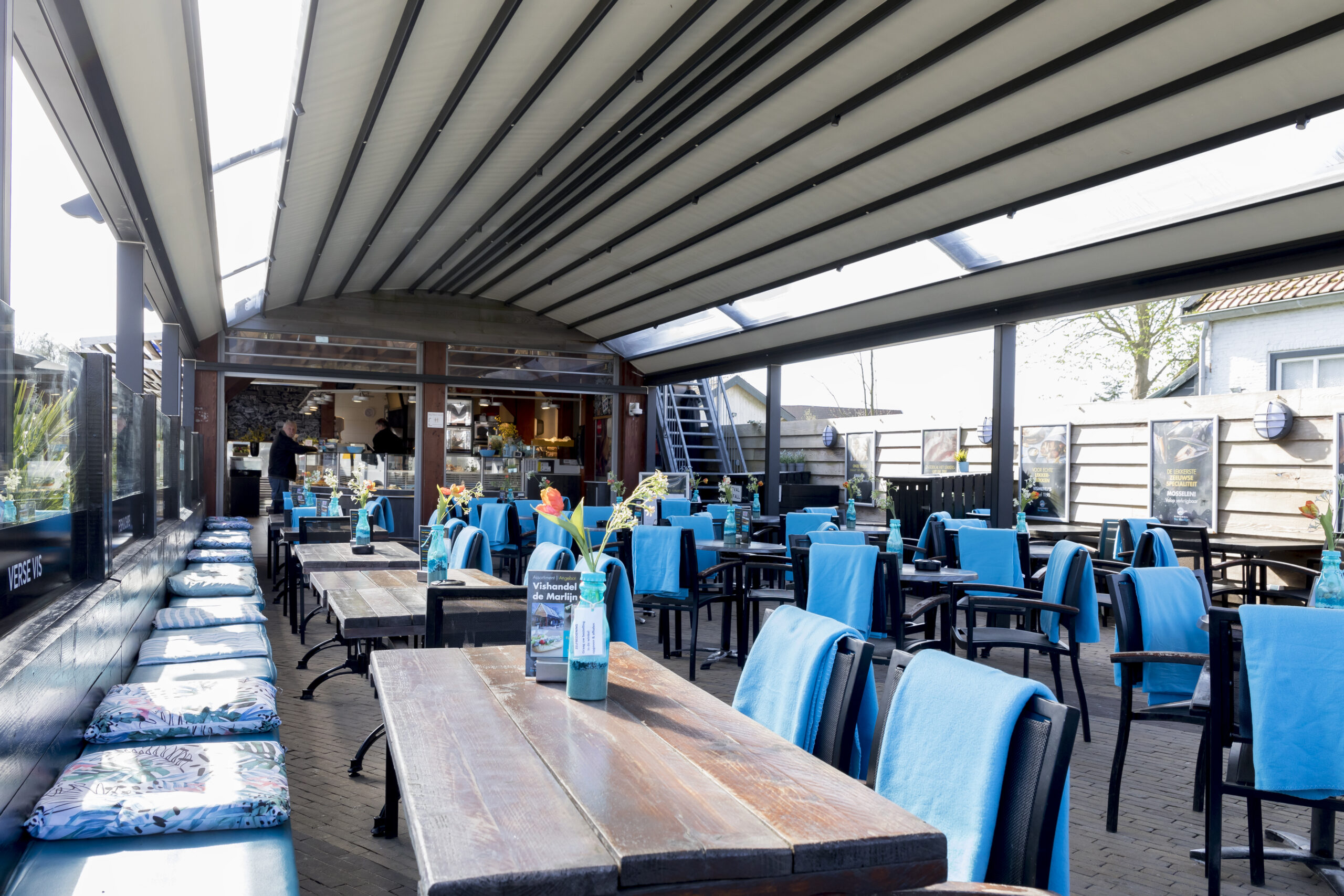 In 2018 werd daarom een nieuwe stap gezet: een flinke overkapping van het bestaande terras om droog en uit de wind te kunnen zitten. De 120 zitplaatsen boden een plek om heerlijk te lunchen, borrelen of uitgebreid te dineren. De vaste overkapping bracht een nieuwe dimensie aan onze zaak. Met uitzicht op het gezellige centrum genoten onze gasten sindsdien het hele seizoen door.